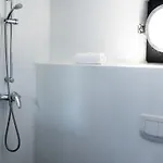 تحتوي الحمامات أيضًا على المرحاض المنفصل والدوش، فضلاً عن ملاءات الحمام والمناشف.